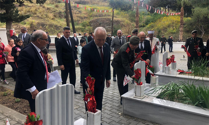 Tören, şehitler için dua okunması ve şehit kabirlerine çiçek bırakılmasıyla tamamlandı.