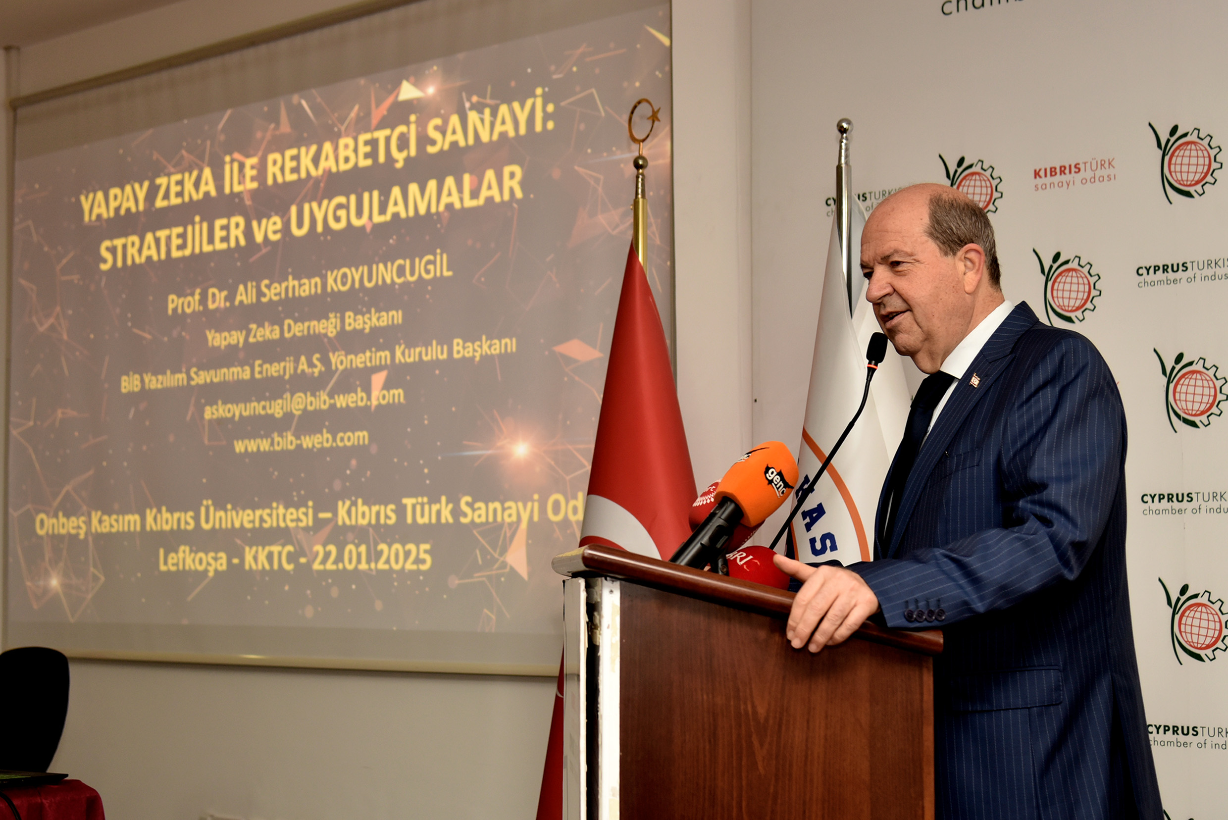 Cumhurbaşkanı Ersin Tatar, Kıbrıs Türk Sanayi Odası ve Onbeş Kasım Kıbrıs Üniversitesi iş birliğiyle düzenlenen “Yapay Zeka ile Rekabetçi Sanayi: Stratejiler ve Uygulamalar” başlıklı panelde konuşma yaptı.