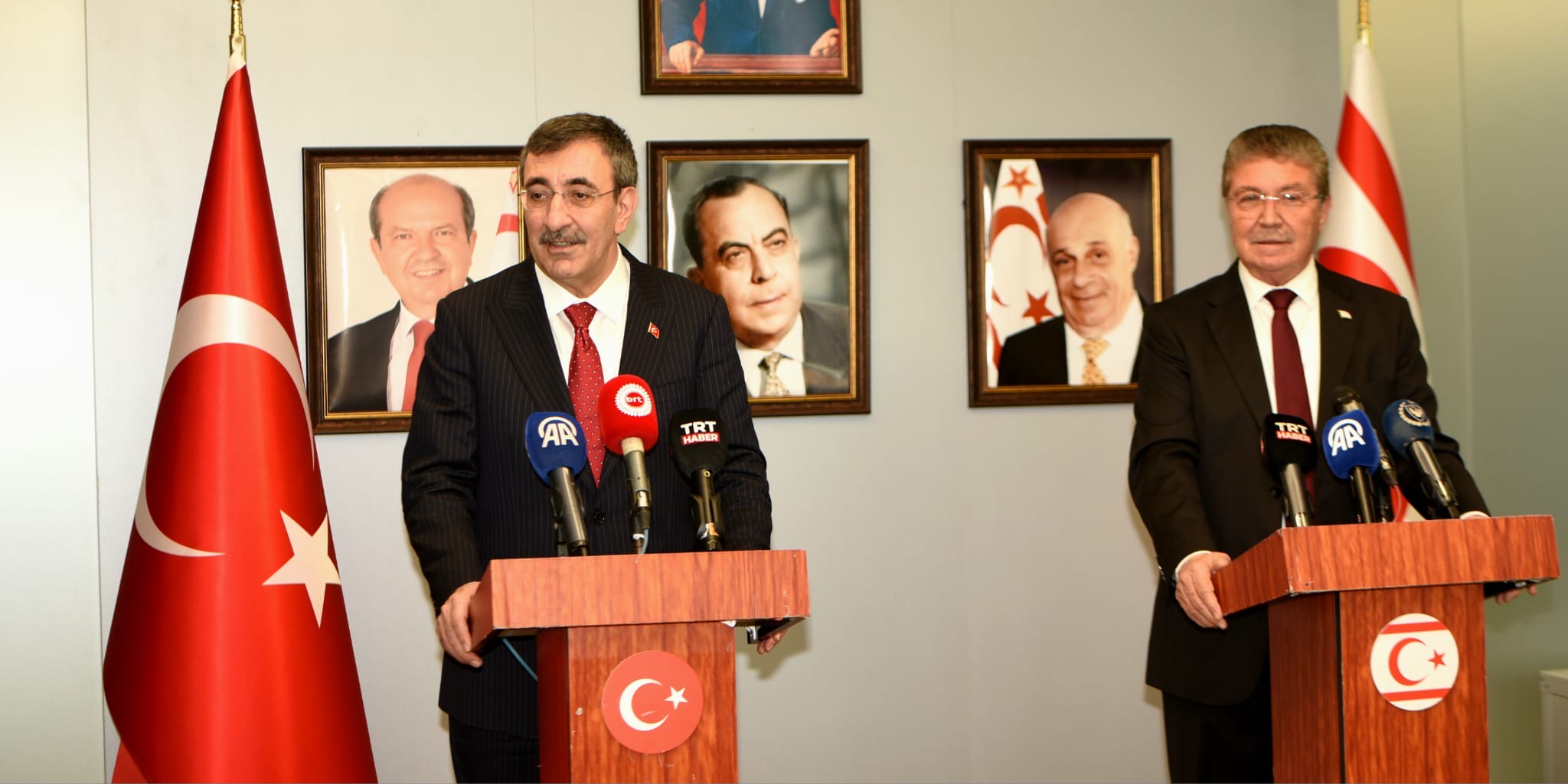 Başbakan Üstel ile TC Cumhurbaşkanı Yardımcısı Yılmaz Ercan’da basın toplantısı düzenledi