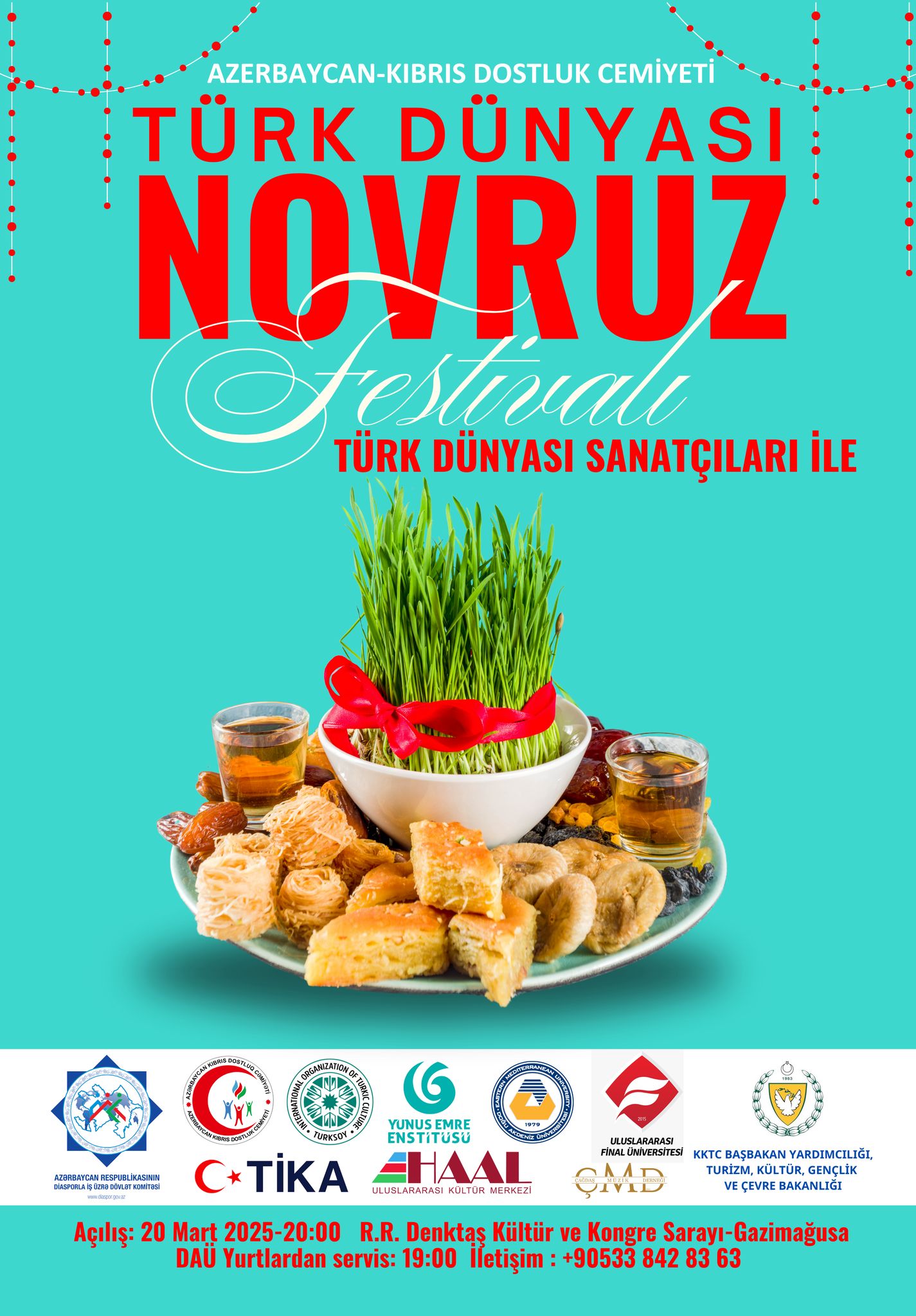 Azerbaycan Devlet Diaspora Başkanlığı, Azerbaycan-Kıbrıs Dostluk Cemiyeti ve Haydar Aliyev Uluslararası Kültür Merkezi’nin iş birliğiyle düzenlenen “Türk Dünyası Nevruz Festivali” dün Gazimağusa’da başladı.