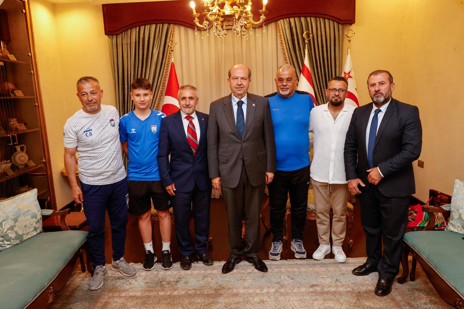 Cumhurbaşkanı Ersin Tatar, Gençlik Gücü Spor Kulübü ve Türkiye Tavşanlı Erdem Spor Kulübü Koordinatörleri ile altyapı futbolcularını kabul ederek, görüştü.