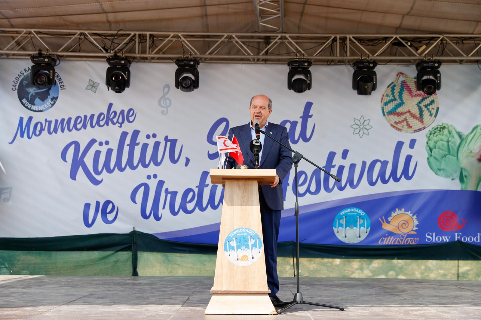 Cumhurbaşkanı Ersin Tatar, Yeniboğaziçi Belediyesi, Mormenekşe Çağdaş Kadınlar Derneği ve Morder iş birliğinde Mormenekşe’de düzenlenen “3. Kültür, Sanat ve Üretici Festivali”ne katıldı.