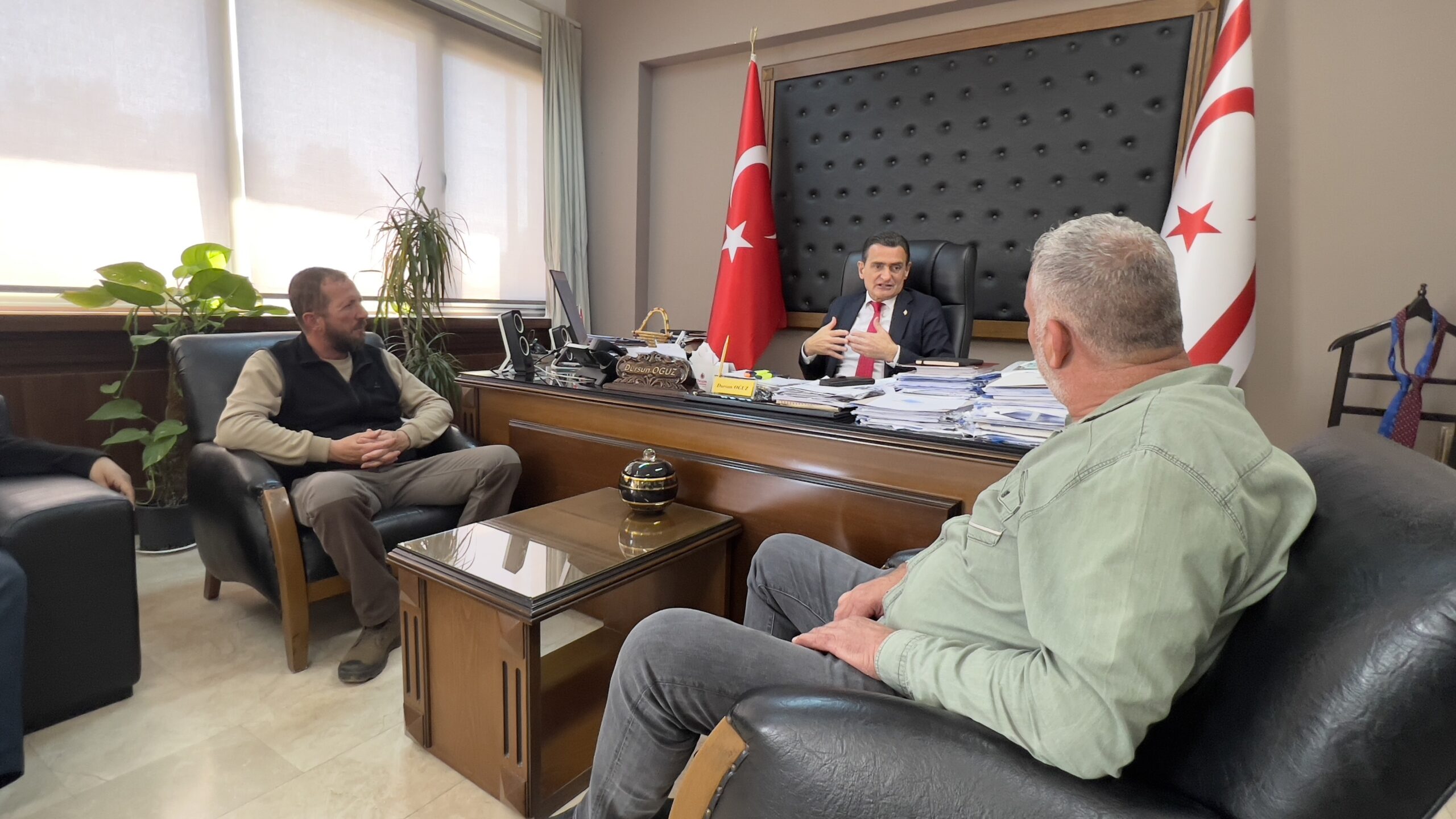 İçişleri Bakanı Dursun Oğuz, Hayvan Üreticileri ve Yetiştiricileri Birliği Başkanı Adil Onalt ve beraberindeki heyeti kabul etti.