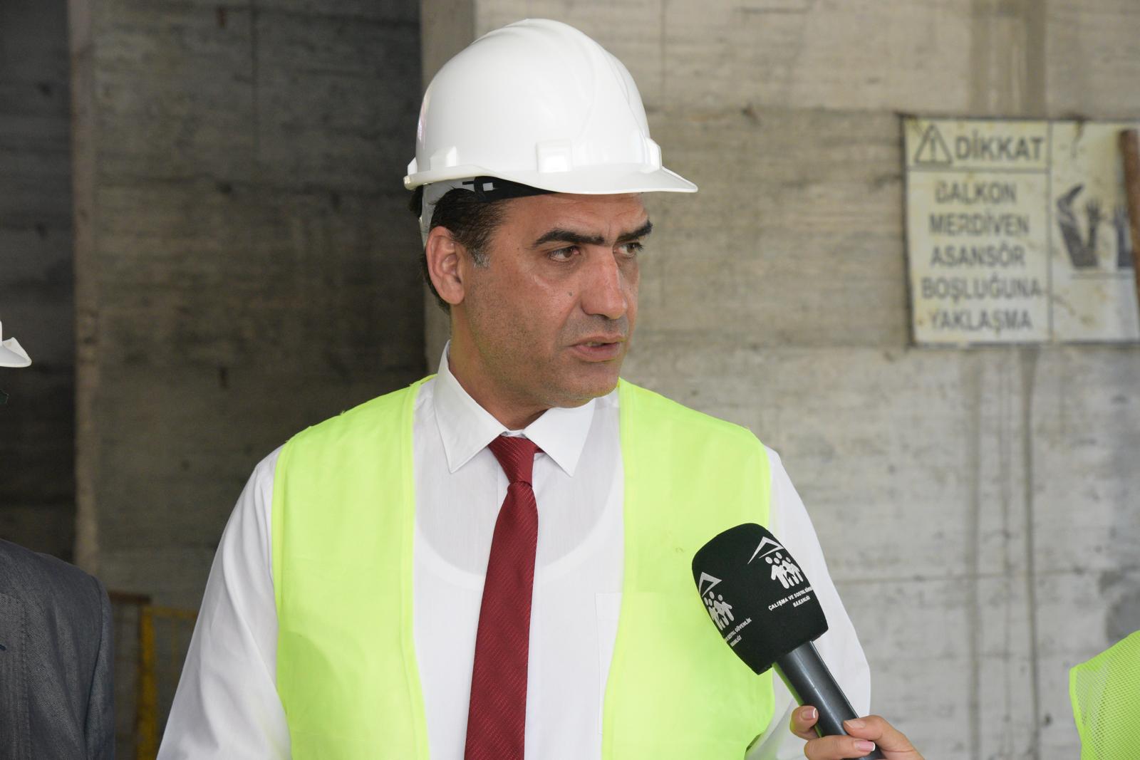 Sadık Gardiyanoğlu daha sonra ikinci inşaatı da dolaşarak,   Çalışma Dairesi müfettişleriyle birlikte eksiklikleri yerinde inceledi.