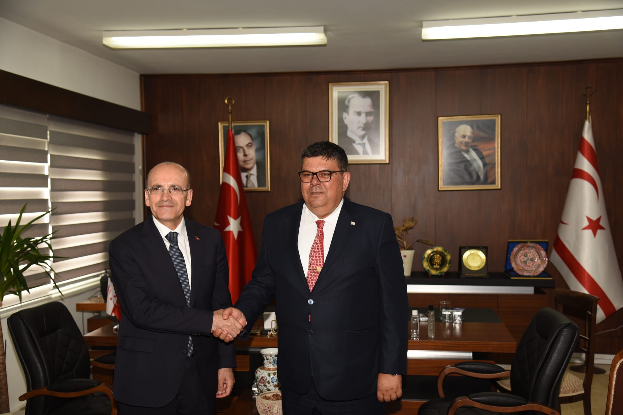 Maliye Bakanı Özdemir Berova, Türkiye Cumhuriyeti Hazine ve Maliye Bakanı Mehmet Şimşek ve beraberindeki heyeti kabul etti.