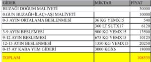 Çiftliklerin ortalama besleme verilerine dayanarak hazırlanan analiz, hayvancılıkla uğraşan üreticilerin içinde bulunduğu zor durumu gözler önüne seriyor. Yapılan hesaplamaya göre, hiçbir ölüm, hastalık, kırılma-dökülme veya işçilik gideri yaşanmayan ideal şartlarda bile bir tosunun 14 ayda 550 kg canlı ağırlığa ulaşmasının maliyeti kilogram başına 200 TL‘yi buluyor.