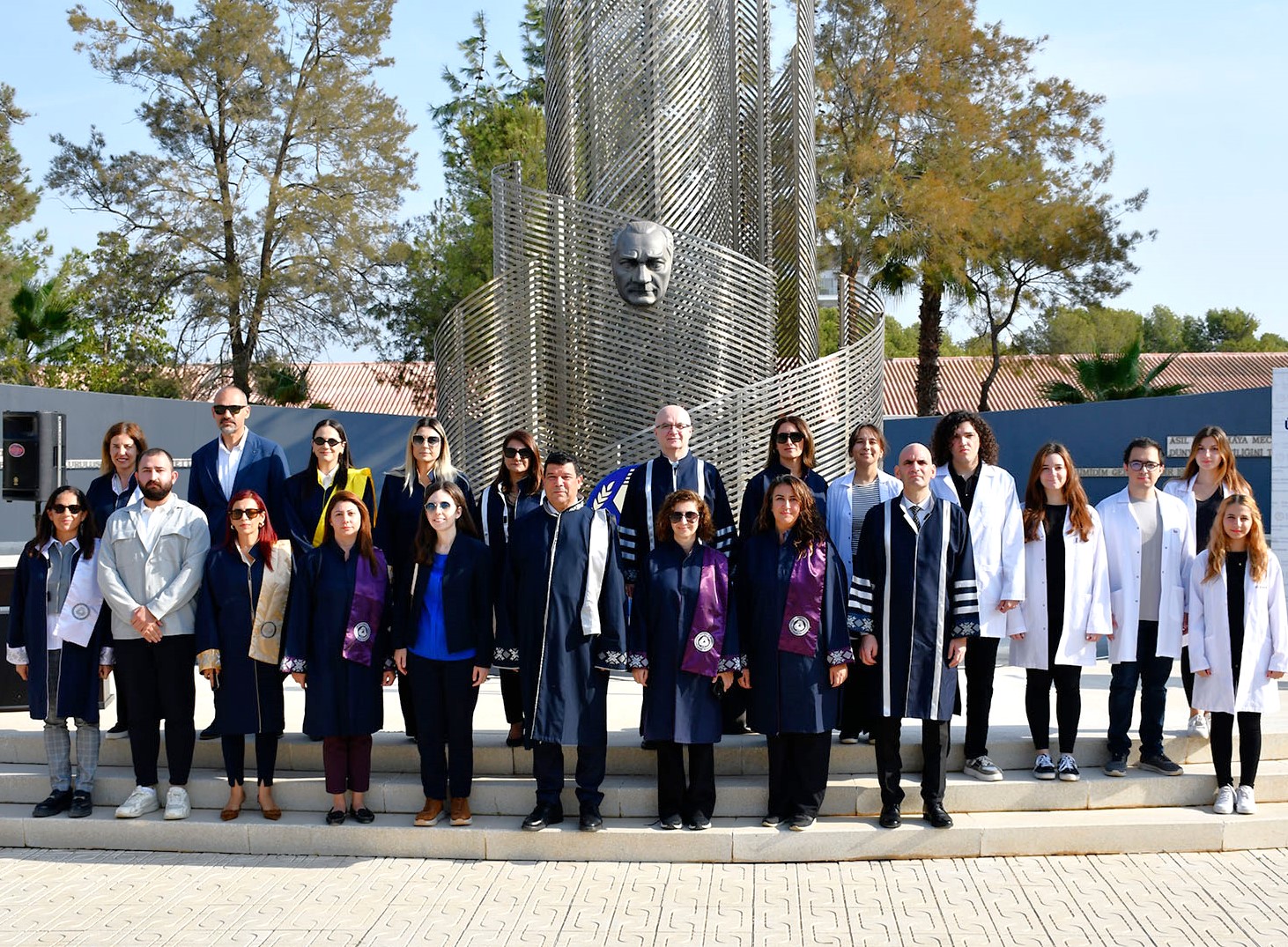 DAÜ Atatürk Araştırma ve Uygulama Merkezi (ATAUM) ve DAÜ Atatürkçü Düşünce Kulübü (ADK) iş birliğiyle gerçekleştirilen DAÜ Atatürk Anıtı önündeki törene, DAÜ Rektörü Prof. Dr. Hasan Kılıç, Rektör Yardımcıları Prof. Dr. Osman M. Karatepe, Prof. Dr. Sonuç Zorlu, Prof. Dr. Ali Öztüren ile Akademik, İdari Personel ve öğrenciler katıldı.