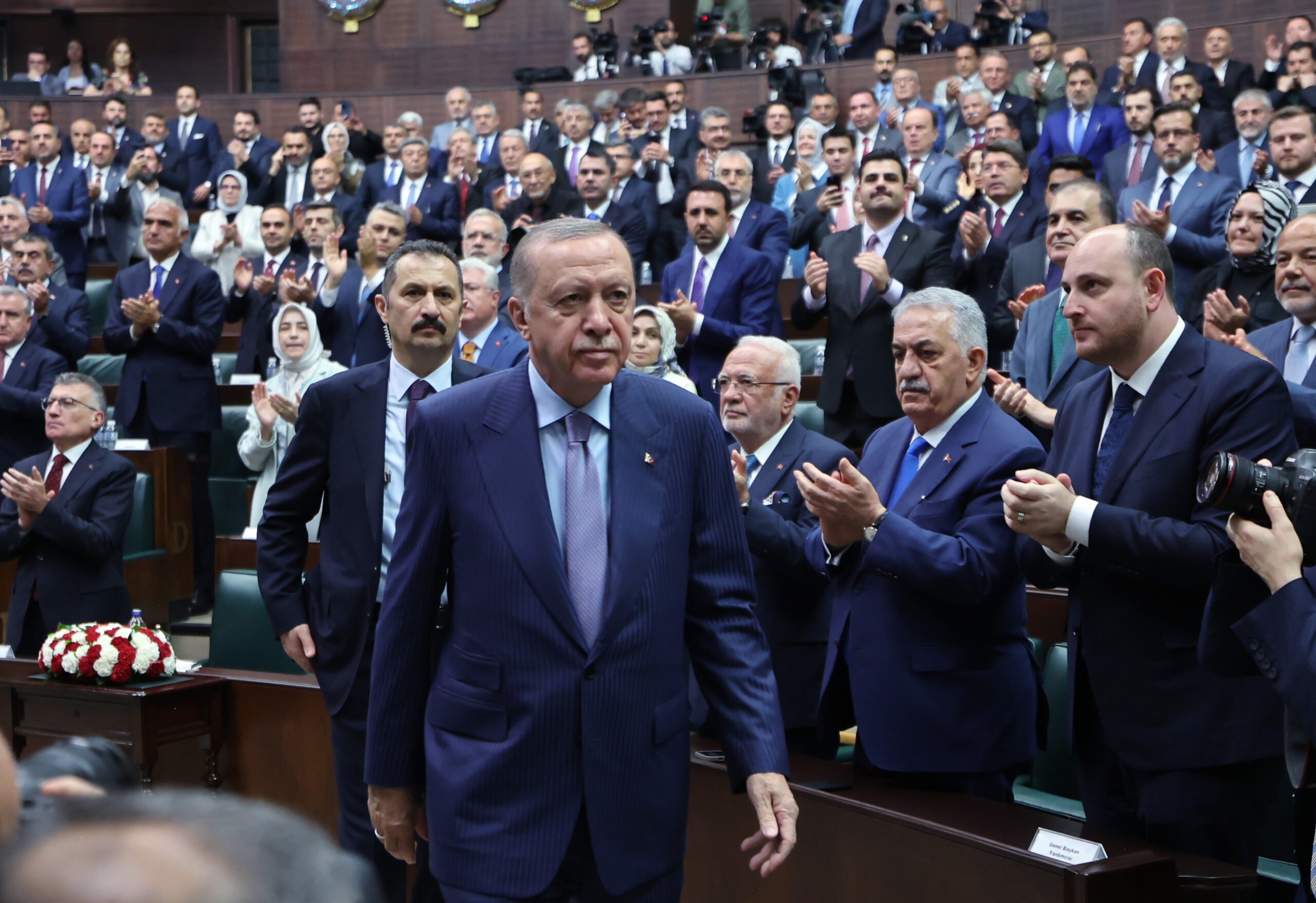 AK Parti TBMM Grup Toplantısı’ndan sonra gazetecilerin sorularını yanıtlayan Erdoğan’a “Bahçeli dün konuşmasında İmamoğlu davasının TRT’de yayınlanmasına destek verdi siz ne söylersiniz?” diye soruldu.