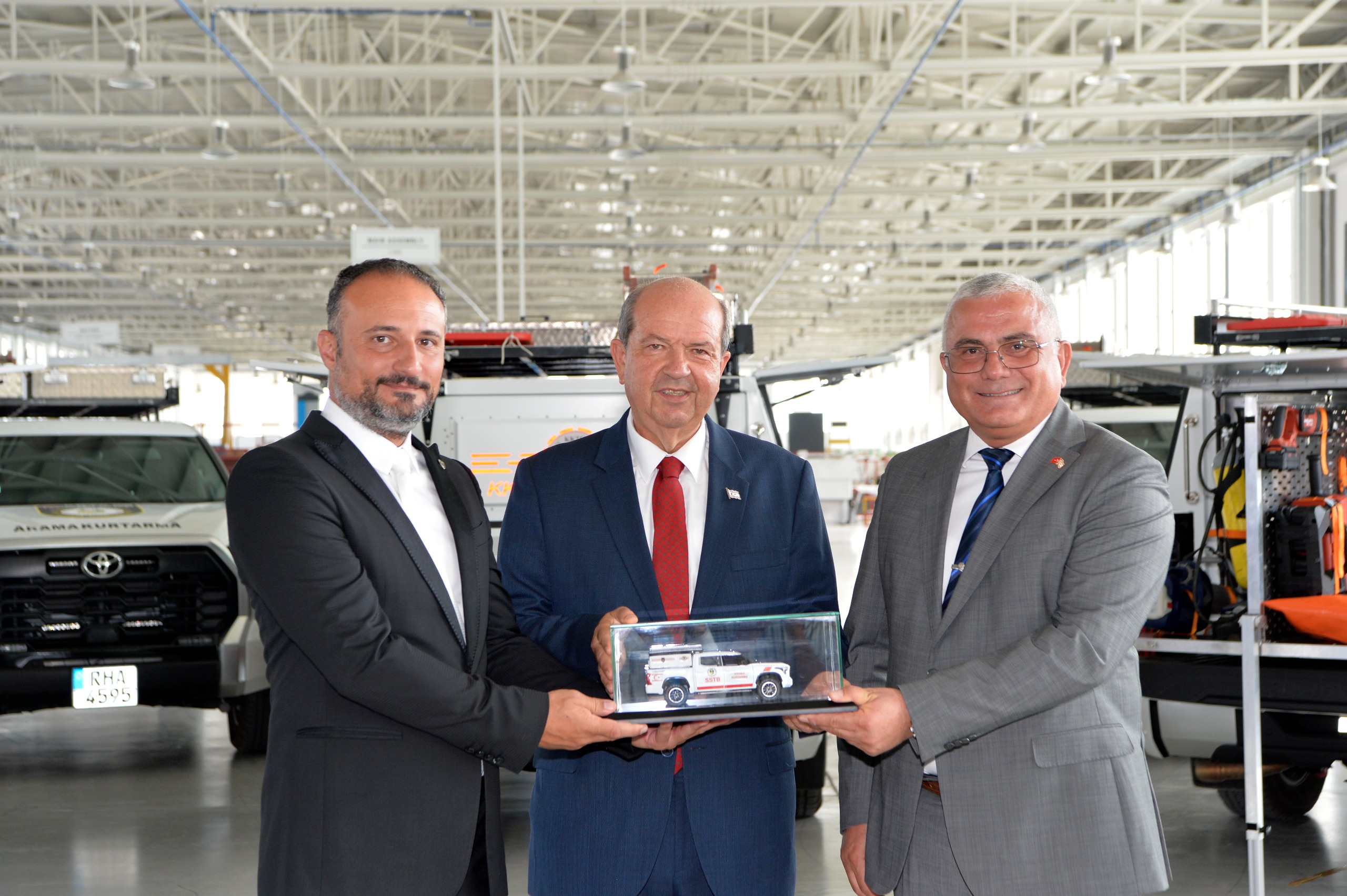 Cumhurbaşkanı Ersin Tatar, üst yapıları Günsel Mühendisliği’nin geliştirdiği Sivil Savunma Teşkilatı Başkanlığı’na ait 7 adet arama-kurtarma aracının teslim törenine katıldı.