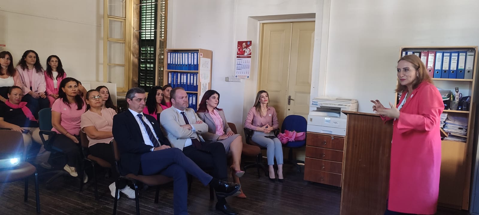 Daire Müdürü Emine Ziba etkinlikte yaptığı konuşmada, ülkede ve dünyada kadınlarda en sık görülen ve aynı zamanda en sık ölüme neden olan meme kanserine karşı bilinçli olunması ve periyodik aralıklarla gerekli kontrollerin yapılmasının önemine vurgu yaptı.