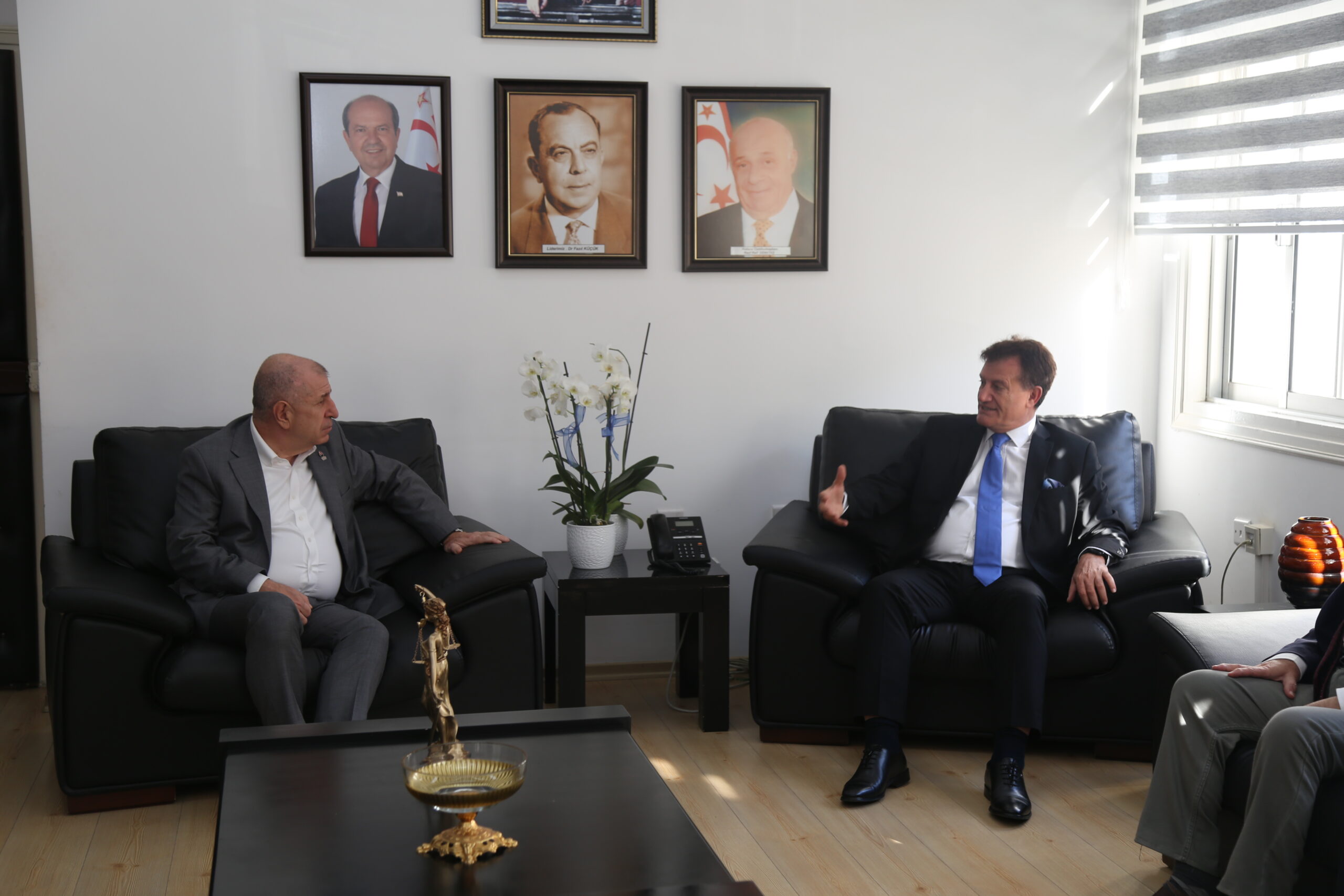 Türkiye’deki Zafer Partisi Genel Başkanı Ümit Özdağ, beraberindeki heyet üyeleri Azmi Karamahmutoğlu ve eski Türkiye Dışişleri Bakanı Prof. Dr. Şükrü…