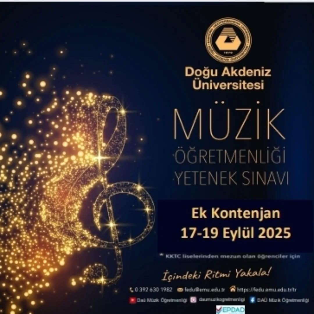 Doğu Akdeniz Üniversitesi (DAÜ) Eğitim Fakültesi, Güzel Sanatlar Eğitimi Bölümü tarafından Müzik Öğretmenliği Lisans Programı için ek kontenjan yetenek sınavı…