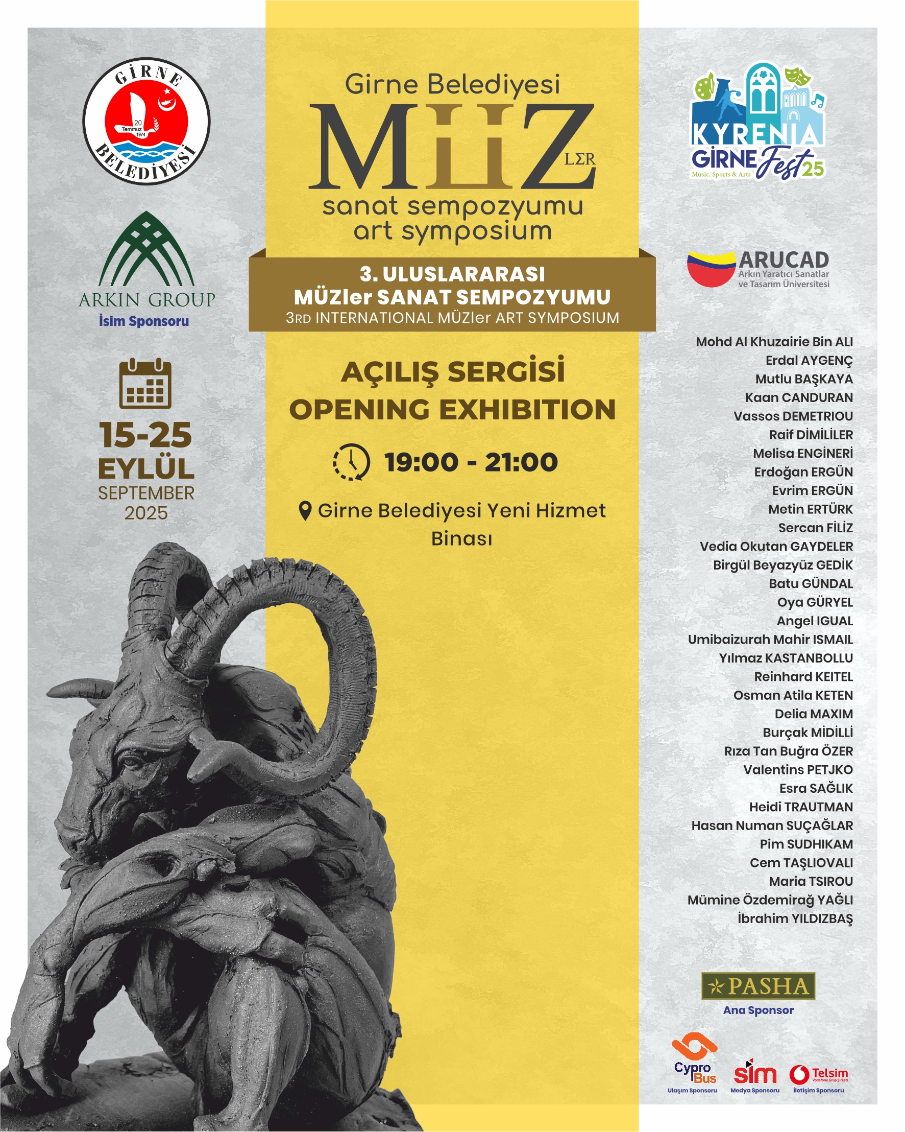 ‘Girne Arkın Group Fest25’ kapsamında bu yıl üçüncü kez düzenlenecek Uluslararası MÜZler Sanat Sempozyumu’nun açılış sergisi, bugün yapılacak. Girne Belediyesi’nden…