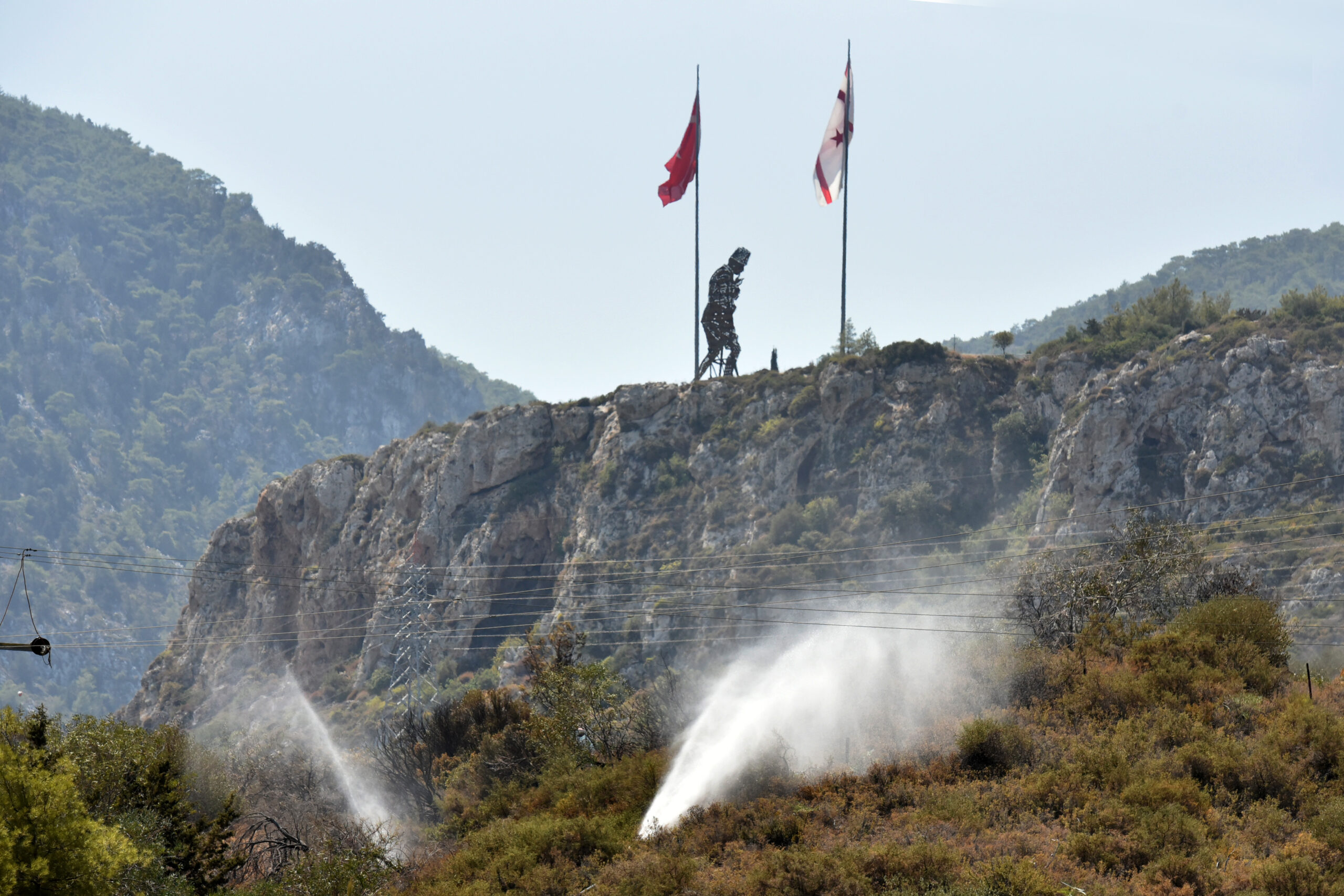 Girne’de Ciklos mevkiinde, bu sabah henüz tespit edilemeyen sebepten dolayı çıkan yangında yaklaşık 8 dönüm makilik alan zarar gördü, soğutma…