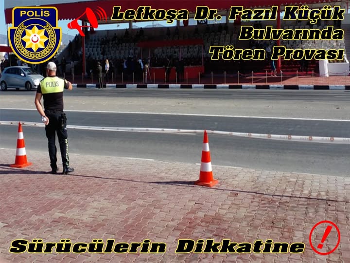 Pazar günü Lefkoşa’da tören provası var… Bazı yollar trafiğe kapatılacak