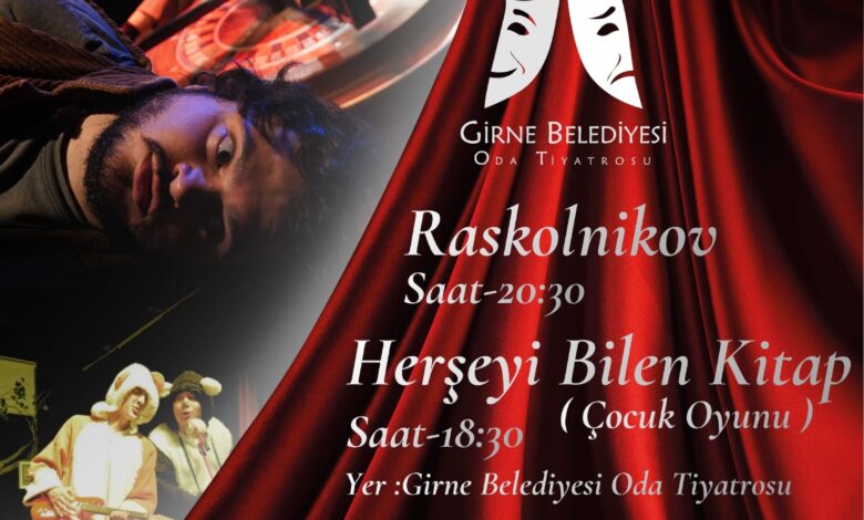 Girne Belediyesi, 27 Mart Dünya Tiyatro Günü’nü özel kılmak amacıyla, çocuklara yönelik “Herşeyi Bilen Kitap” ve yetişkinlere yönelik “Raskolnikov” adlı iki oyunu seyirciyle buluşturacak. Girne Belediyesi Oda Tiyatrosu’nda sahnelenecek olan etkinlikte, “Herşeyi Bilen Kitap” saat 18.30’da, “Raskolnikov” ise saat 20.30’da izleyicilerin karşısına çıkacak. Ücretsiz olarak düzenlenen gösterimlerde yer almak isteyen tiyatroseverler, rezervasyonlarını www.kibrisbiletcim.com adresinden veya 0533 821 21 44 numaralı telefondan yaptırabilirler. Girne Belediyesi’nden yayınlanan bu değerli etkinlik haberi, kültür-sanatseverleri memnun etmeye aday.